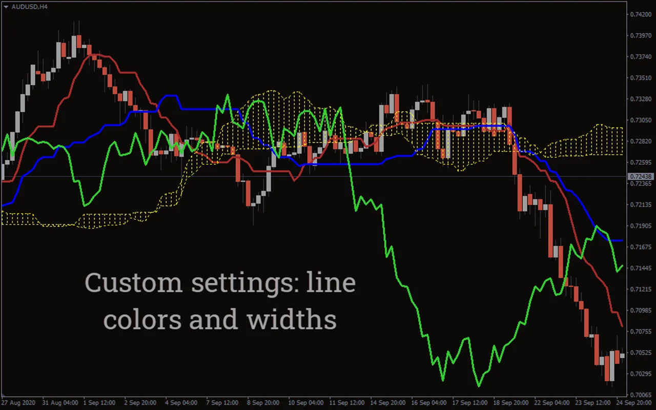 گستره چیکو یکی دیگر از اجزای سودمند معامله گر روند ایچیموکو کینکو هیو است. وقتی قیمت بالاتر از خط سبز ناپایدار باشد، بازار نزولی است. و زمانی که قیمت به زیر خط میرسد، جفت ارز صعودی است. ممکن است خلاف واقع به نظر برسد، اما این درست است.